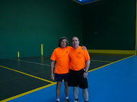 La segunda partida la disputaron por nuestra parte Jose y Eusebio, fue igualado en todo momento , parecía que en el punto 20 se rompía el partido, ya que observabamos que el zaguero rival al dar a la bola hacia unos gritos extraños dando señal de cansancio, pero su compañero metió dos mates seguidos y el partido fue igualado hasta el punto 27, momento en el cuál nuestra pareja encadenó una serie de buenas acciones que nos colocaron con un favorable 33 a 27 que no desaprovechamos y logramos la victoria finalmente por 35 a 29 en 40´. De esta partida habrá un video de un punto en nuestro canal de videos dehttp://www.dailymotion.com/user/clubfrontenisrivas